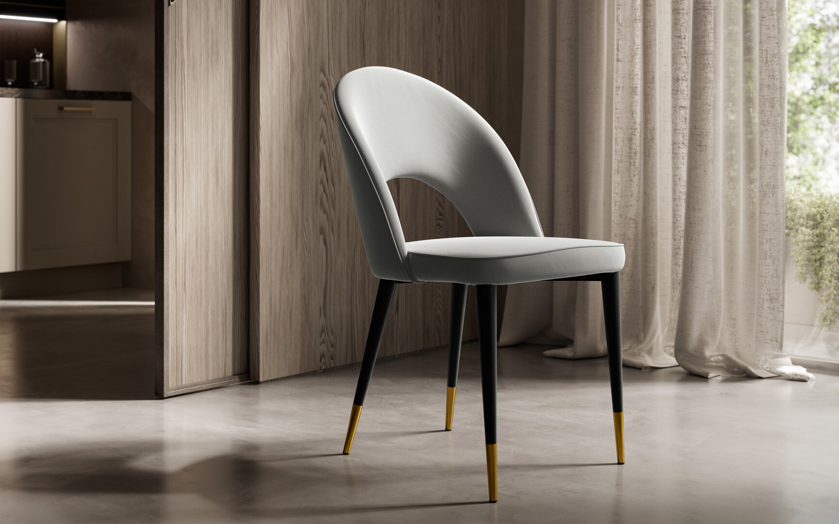 Chaise avec structure en métal peint et embout de pied en ottone satiné. Assise et dossier avec revêtement en velours.
